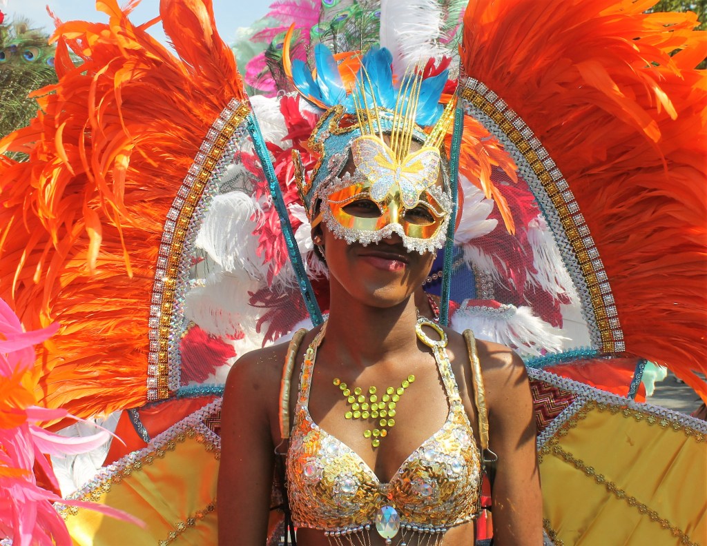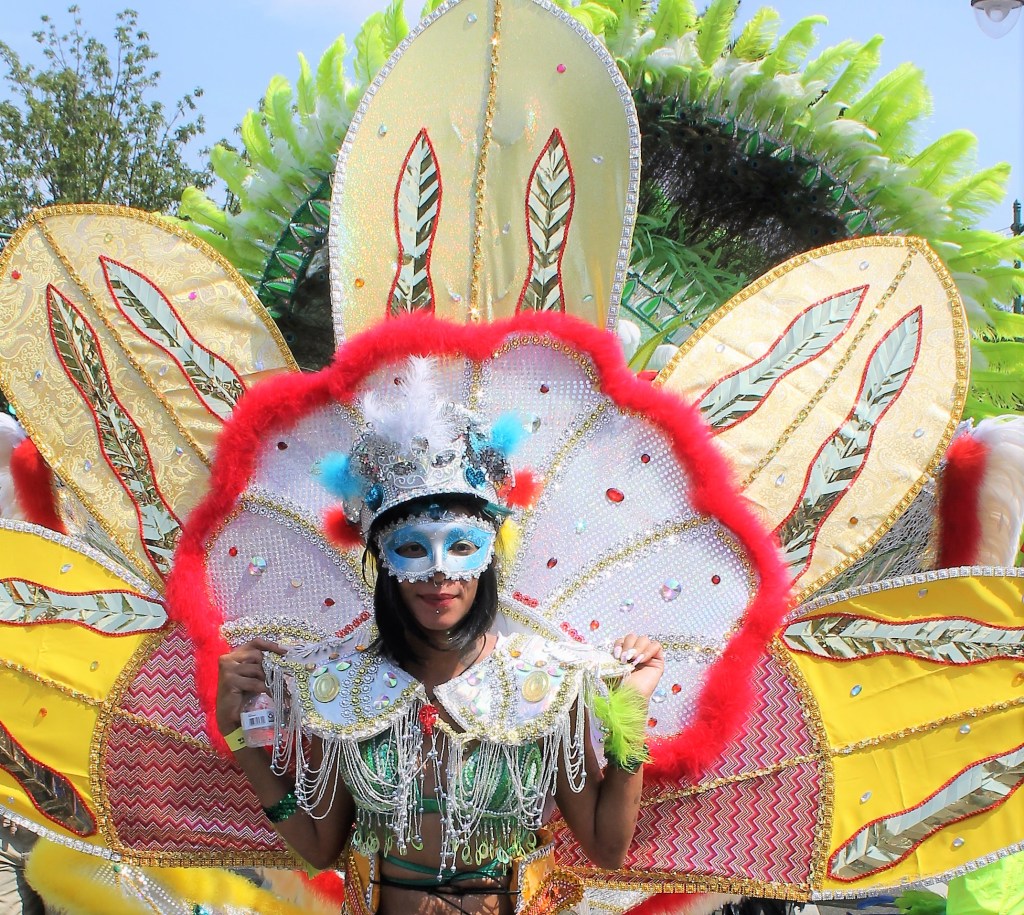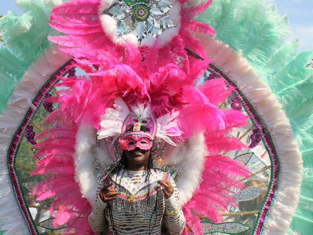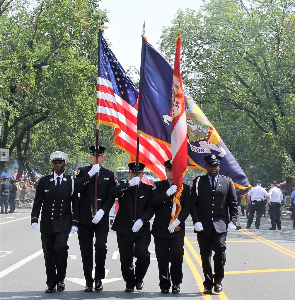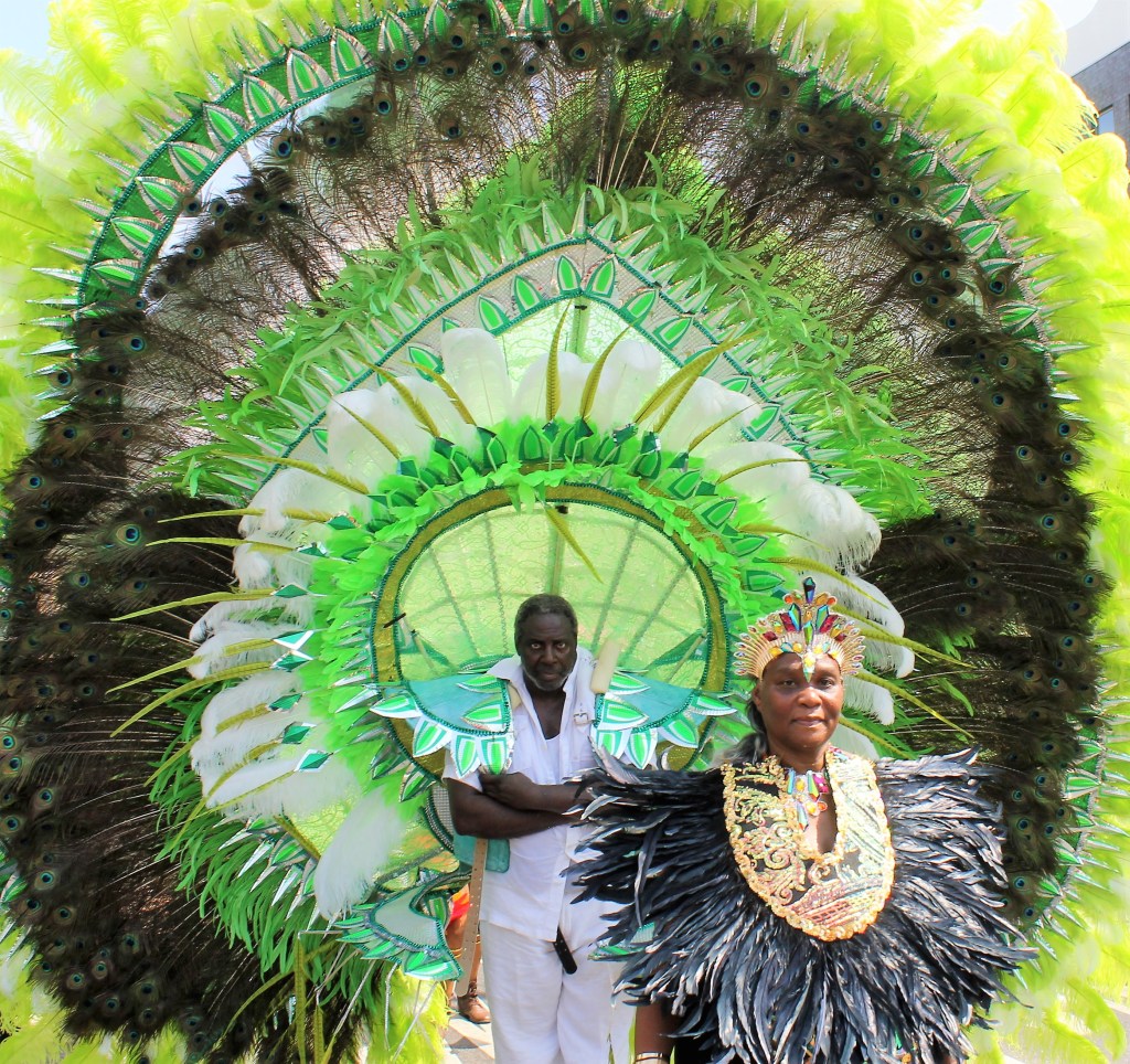 After a 2 year in person absence, The West Indian Labor Day Parade was in full force. Thousands of marchers kept true to the tradition of events that go on during Carnival in the islands of the Caribbean. The 53rd annual parade was nothing short of spectacular with masqueraders, costumers, and tractor trailer trucks with the tallest and loudest speakers of any parade in NYC. Hundreds of fans marched with their favorite groups along the 2 mile stretch of the parade route on Eastern Parkway. Since NYC is frigid cold during the actual time of Carnival in February or March, parade organizers decided to recreate the fashion and tradition of Carnival in hot early September. Once I made my way onto Eastern Parkway near Washington Ave., the enticing aroma of seasoned food drew me to see what was on the menu. Kiosk after kiosk offered all kinds of West Indian foods from roti to jerk chicken to fried fish…the list was endless. As I was chowing down some delicious food from Kedisha Dickinson’s kiosk, I heard the sound of the steel drums coming up the parade route. The NYPD Brass Band got this party started with some really good beats.