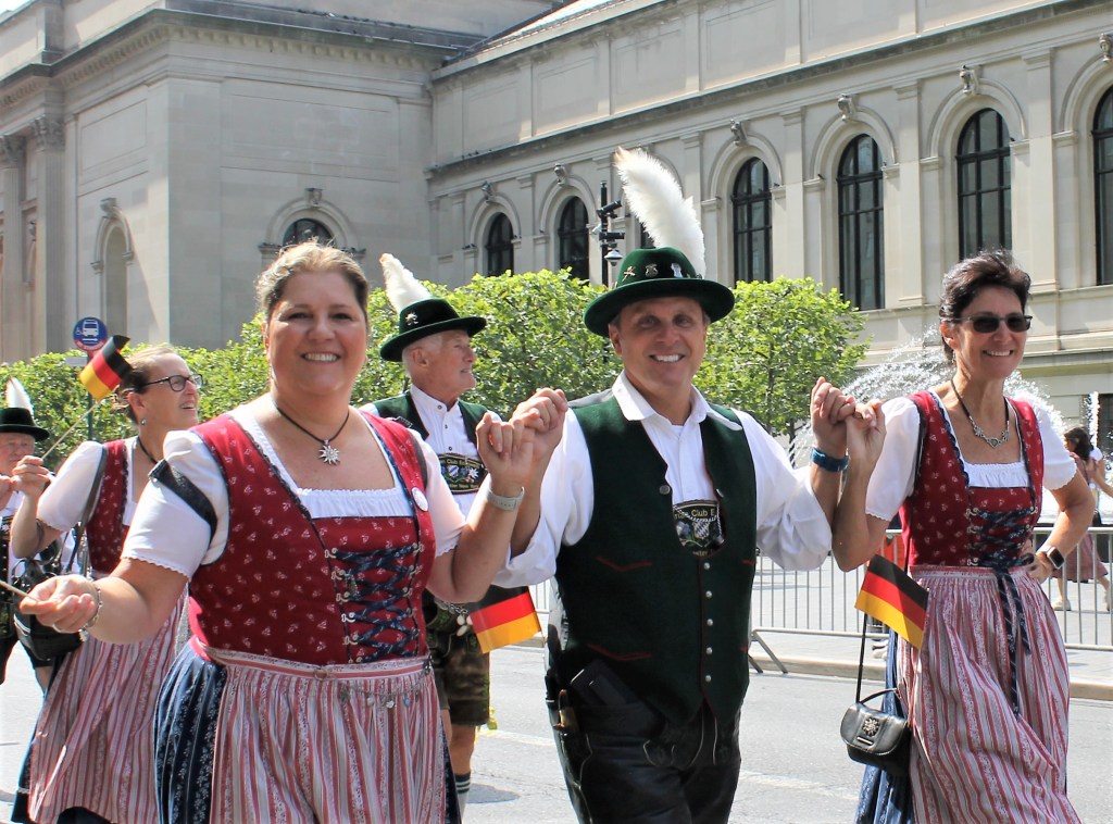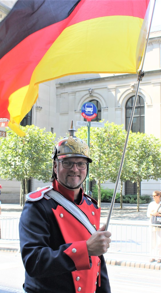 The Steuben Parade celebrates the contributions made by Germans and German-Americans to America. At the reviewing stage set up on 77th and 5th Avenue, the emcees reminded the crowd that the first kindergarten school was located in Carlstadt, New Jersey. At the staging area , a youth group band called Sankt Ottilien played both the German and American national anthems as a sign of unity. The parade also honors Baron Friedrich Wilhelm von Steuben who helped retrain the Continental Army during the Revolutionary War and helped America gain its Independence. This year a model replica of the Brooklyn Bridge was displayed in honor of John Augustus Roebling as the German engineer who created the masterpiece of all New York City bridges. And of course what would the Steuben be without its fair share of beer floats. Did I mention they’re the most fun part of the parade.