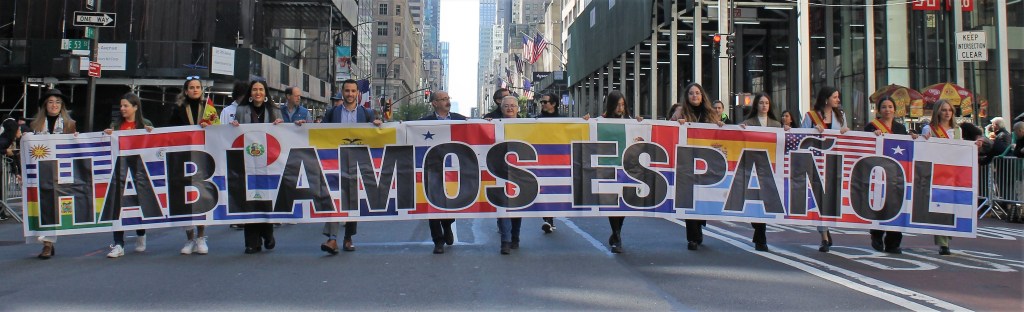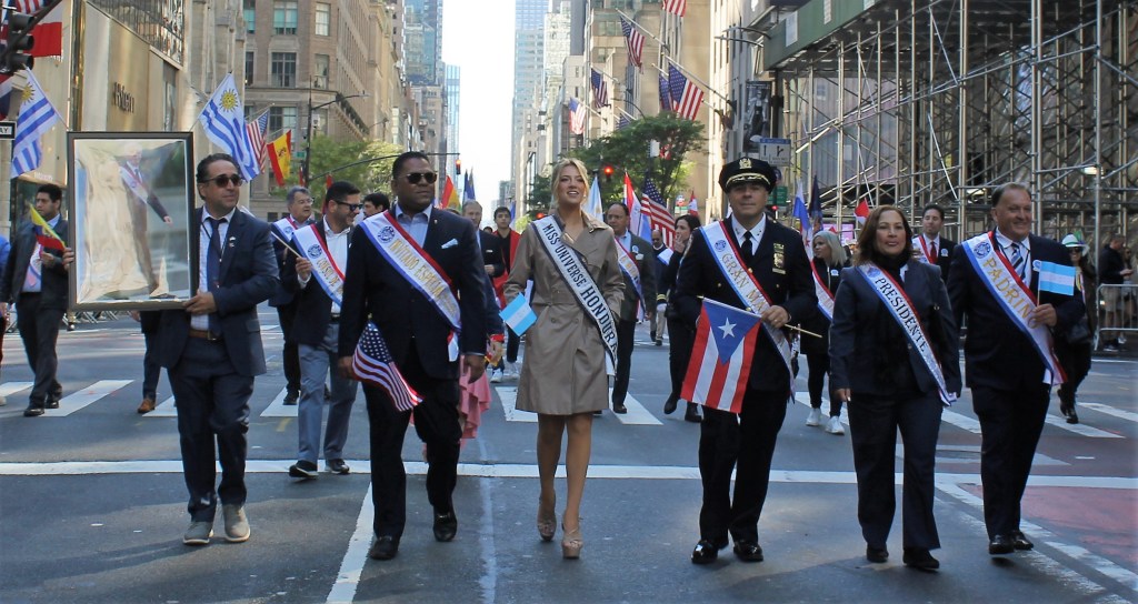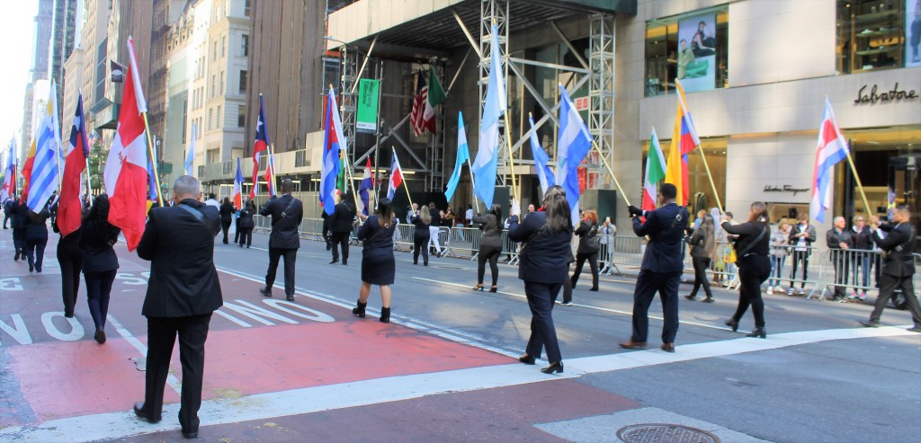 The close of Hispanic Heritage Month had the largest celebration of a wide variety of cultural display in the US and possibly the World right on 5th Avenue. For the 56th time, hundreds of marchers representing their national heritage and country displayed colorful and traditional costumes. The vast majority of Spanish speaking countries and Spain came out to exhibit their cultural pride in the form of dance and music. Revelers lined up the parade route from 45th street up to 72nd where they saw friends and family members proudly cheer for their country or wave their flags. In this parade, the first group to march are from the parade committee and their display off all the flags of the Hispanic nations of the Western Hemisphere and Spain. The honorary lead band came from Panama with lots of energy to set the tone for a fun filled day.