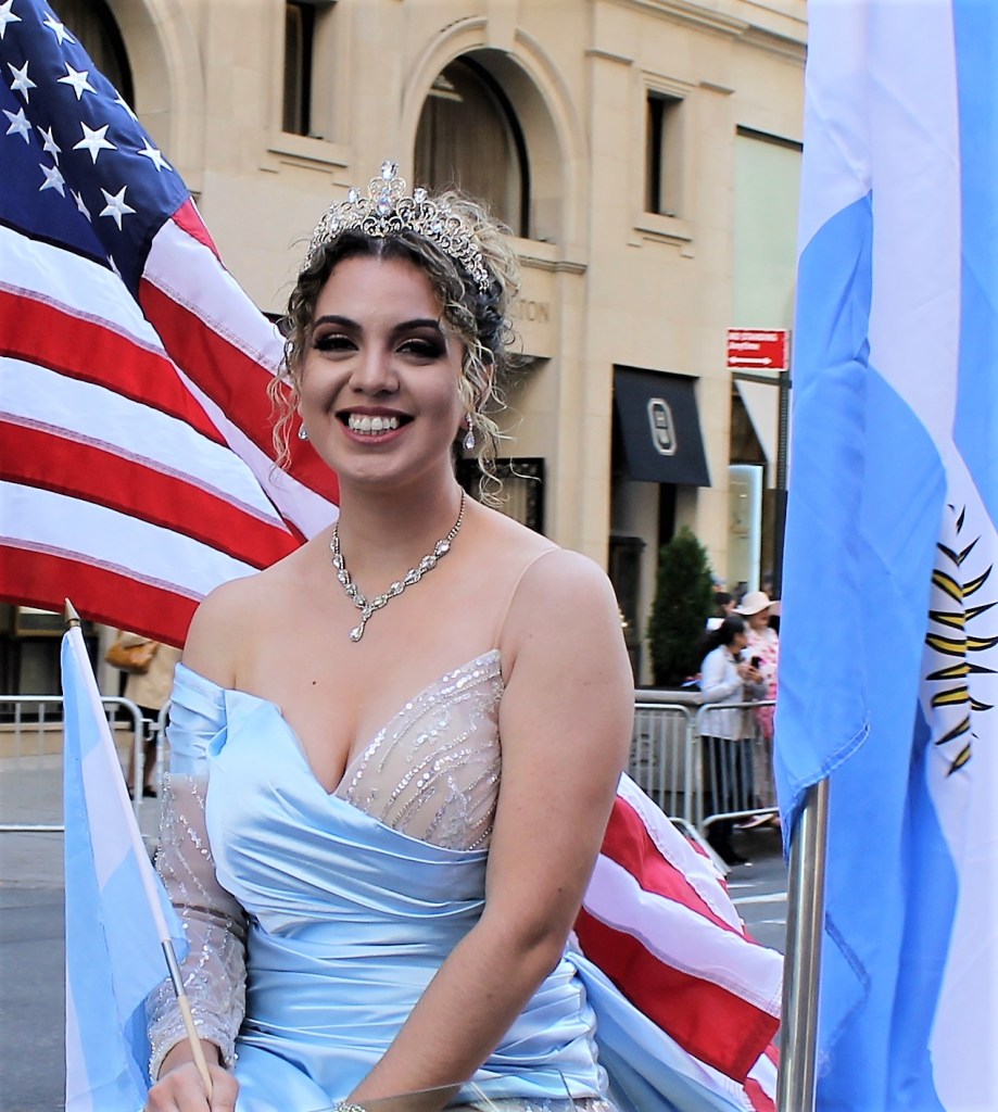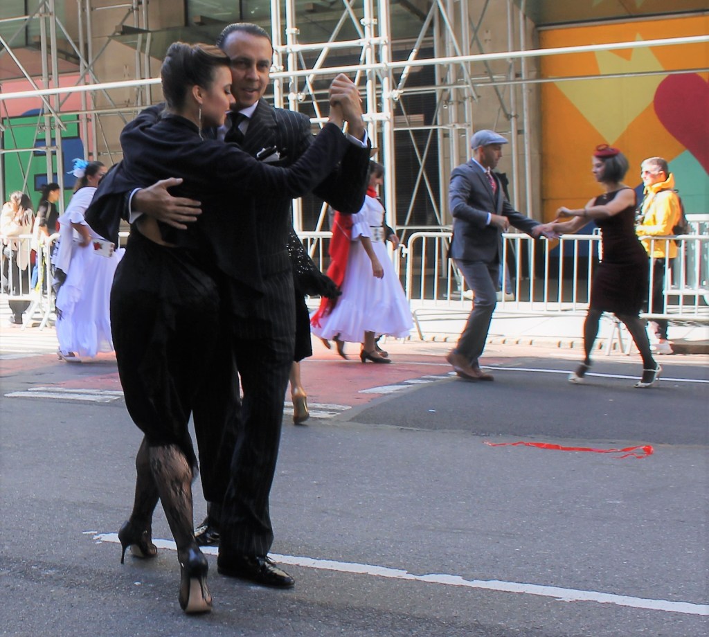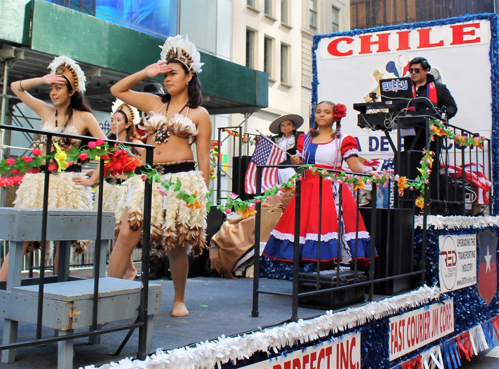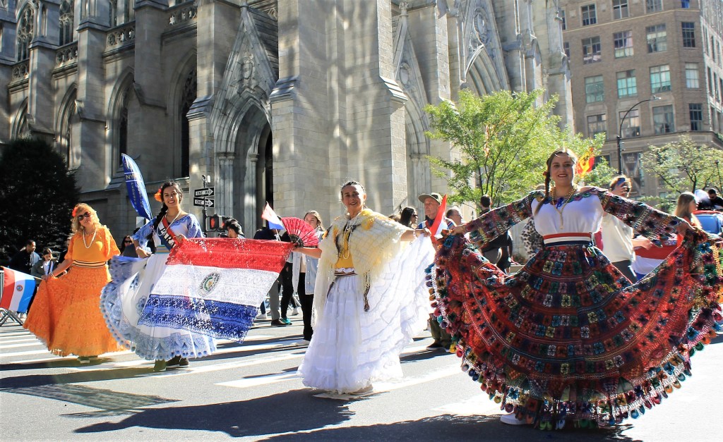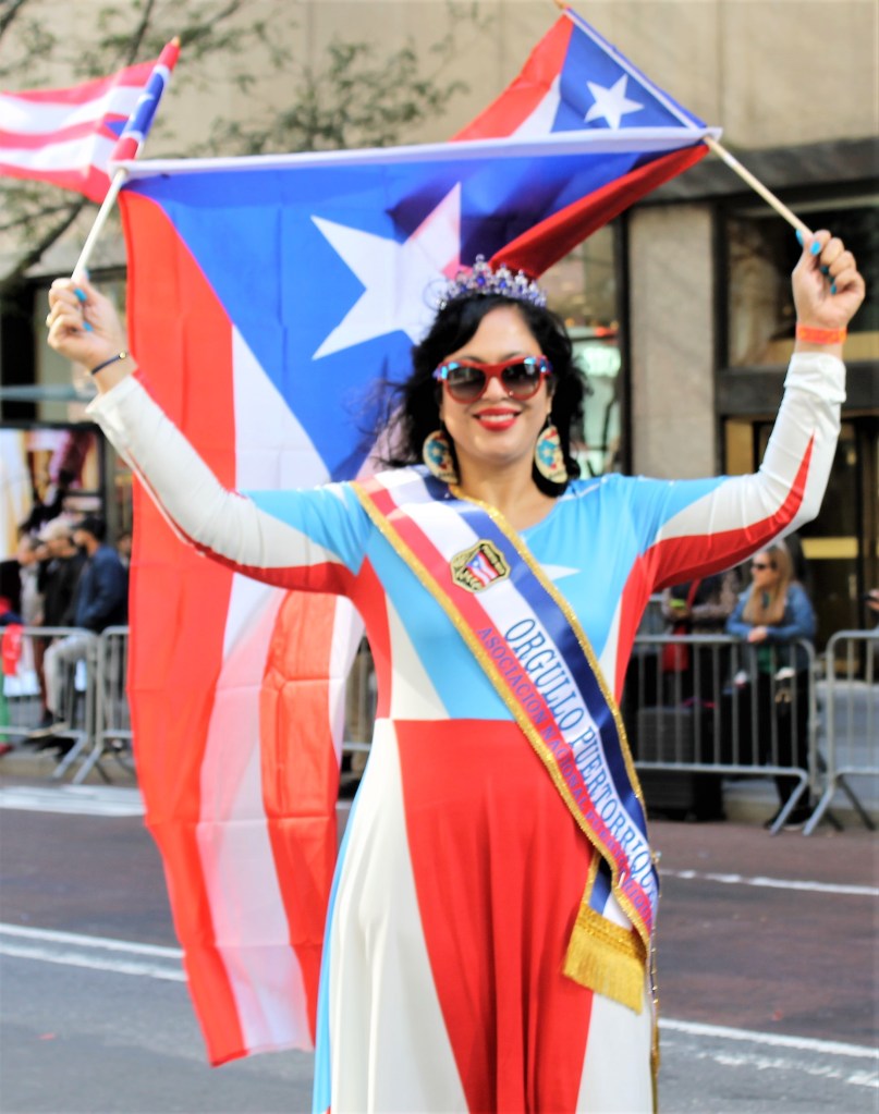 Nicaragua had a small group representing their culture and was a good introduction for the large group from Panama. One of the nicest thing s about the Panamanian group is they bring up student marchers from Panama to be part of the huge celebration. Then a huge group of ladies appeared to display traditional dresses in the form of polleras. They were amazing. Then another colorful group of Molas came out to display their beautiful layered clothing. Wrapping up that group was another set of drum and bugle marching bands. Peru had a nice group of dancers and amazing costumes. Puerto Rico had a small group of bomba dancers. Paraguay had a special group of bottle balancing ladies. They were amazing. Venezuela closed out the parade with a lively drum group that went from one side of 5th Ave. to the other to anyone waving a Venezuelan flag and had them dance to the beat. This was truly an amazing display of culture, music and dance to celebrate the life and contributions of Hispanics in New York and the World. This was a parade like no other. Me siento muy orgulloso de mi Cuidad y mi hermanos y hermanas Hispana. (I feel proud of my City and of my Spanish brothers and sisters).