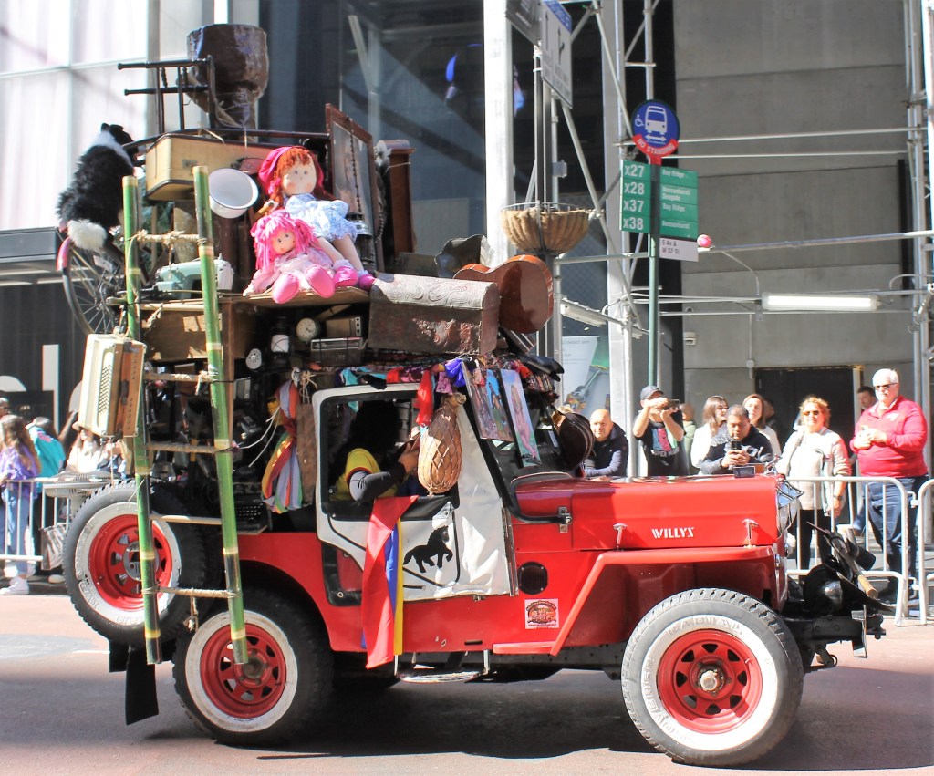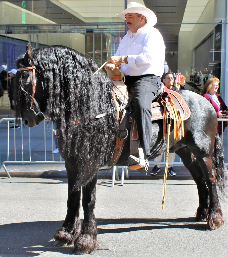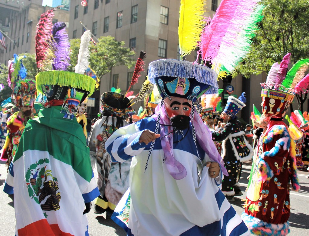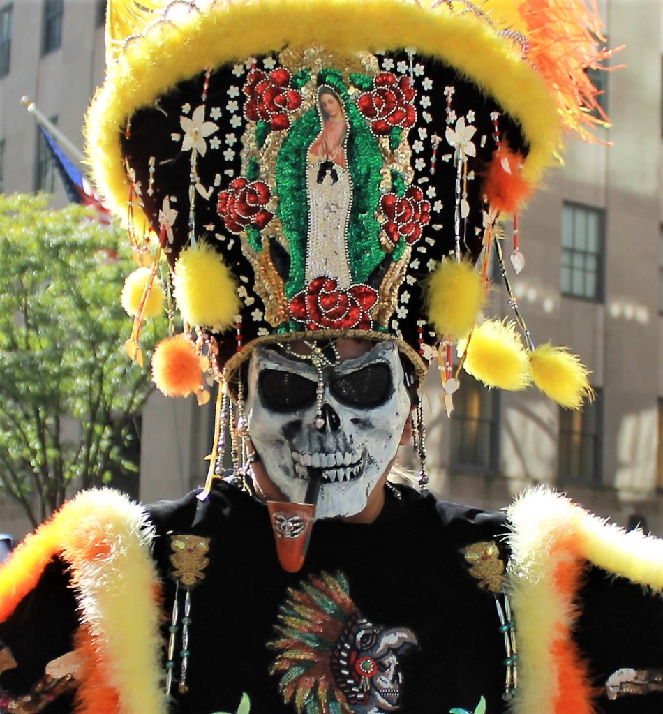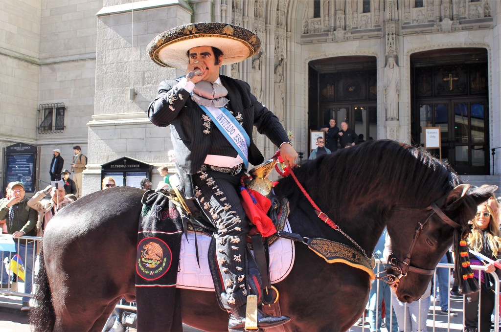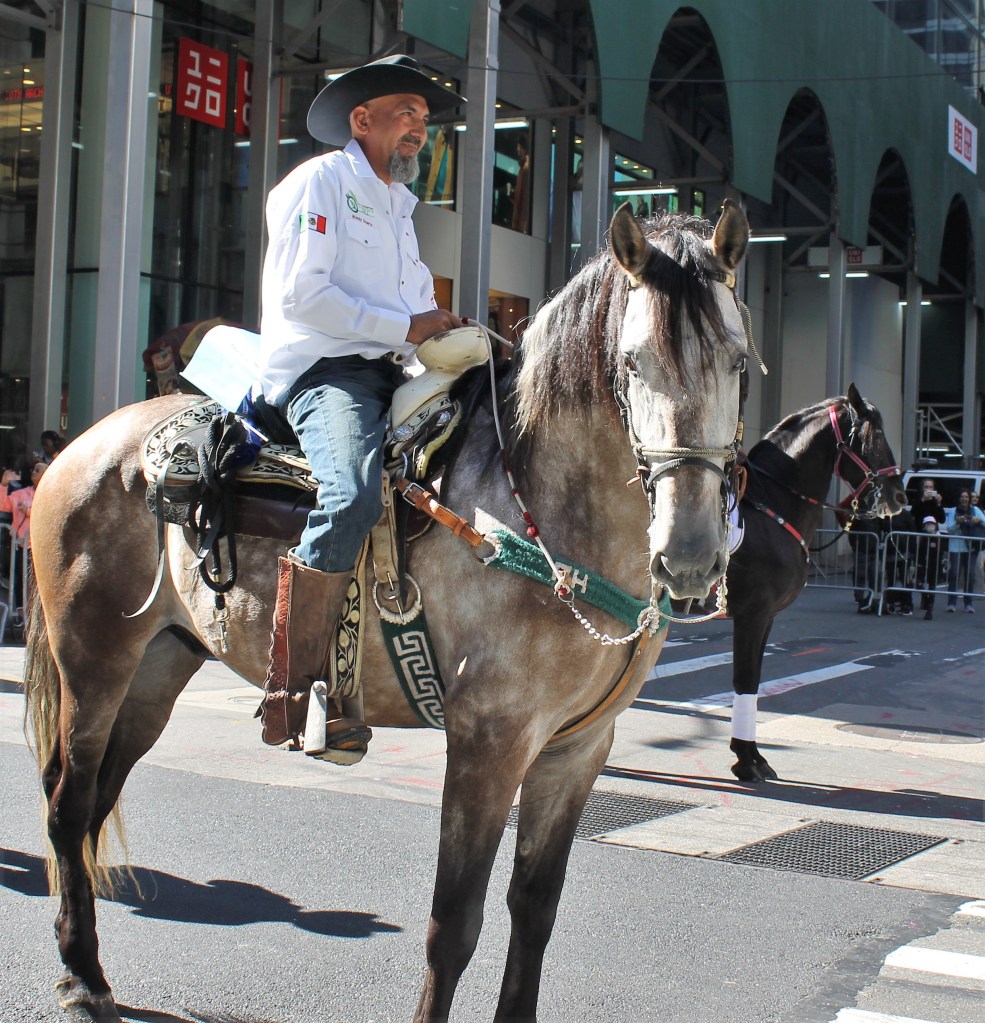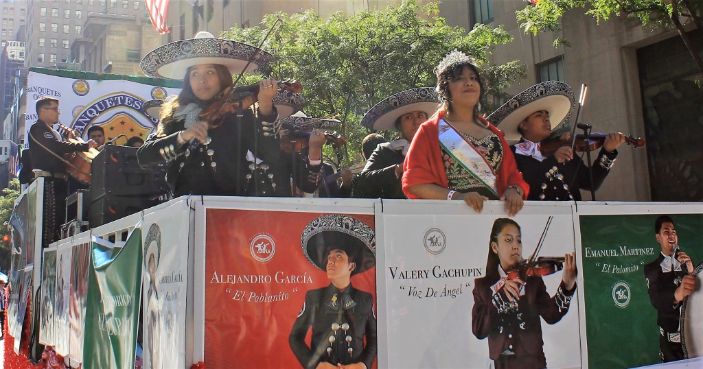 A small group from the Dominican Republic had people dressed up in diablo costumes. Ecuador and El Salvador had some some great outfits. A returning favorite were the Carboneros from El Salvador. Guatemala probably had the show stopper when riders and horses from Los Peres Ranch trotted out. One singer was a dead ringer for the famous deceased singer Vicente Fernandez. The rider sang popular songs to crowd who sang along. It truly was a magical moment on the streets of NYC. Honduras had a popular singer sing his hit from a nicely decorated float. A large group arrived from Mexico with some really detailed costumed dancers representing the Chinelos from the Moreles part of Mexico. A special treat came in the form of a mariachi band on a float. The young musicians were amazing and brought it all to the stage.