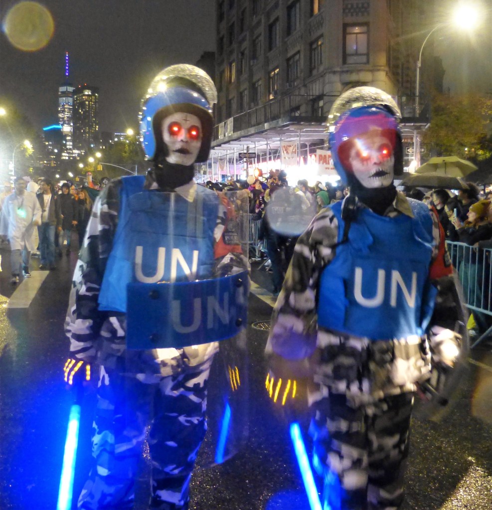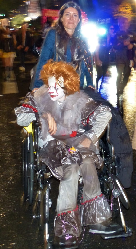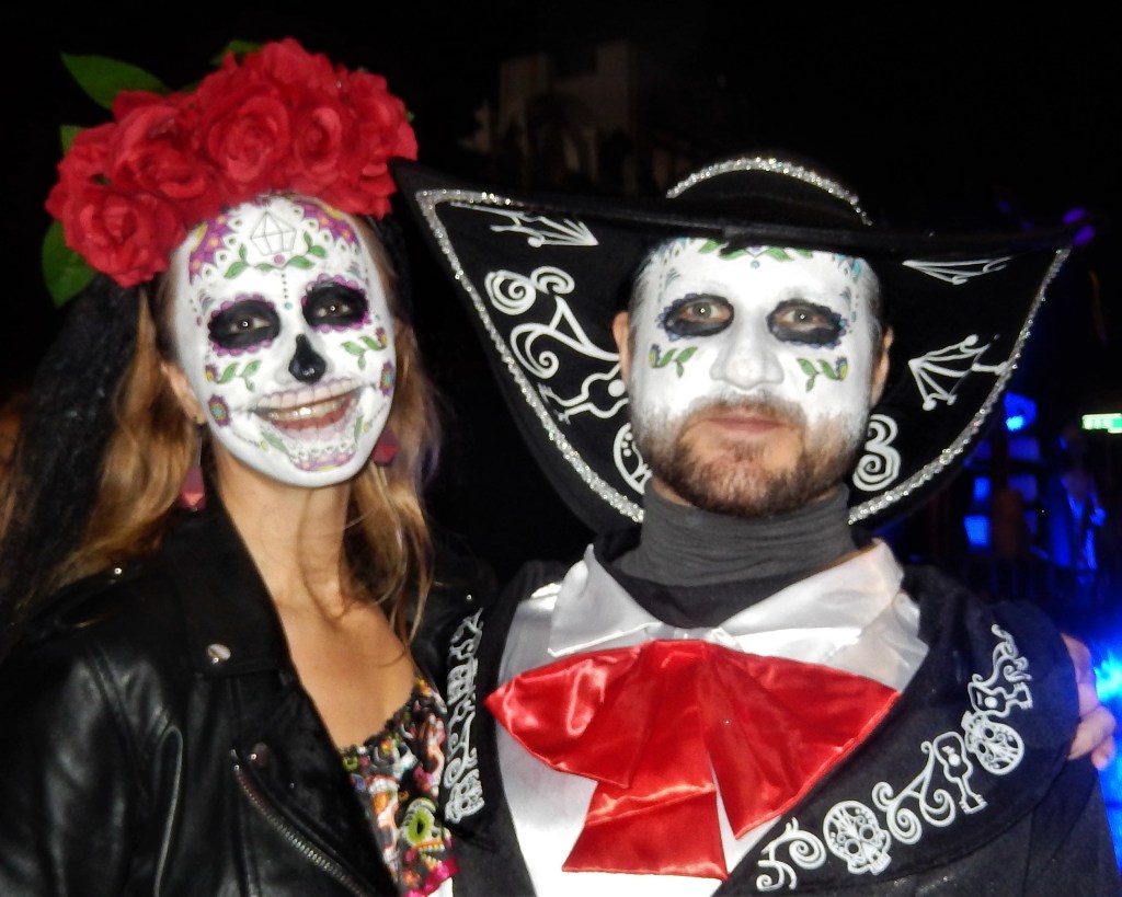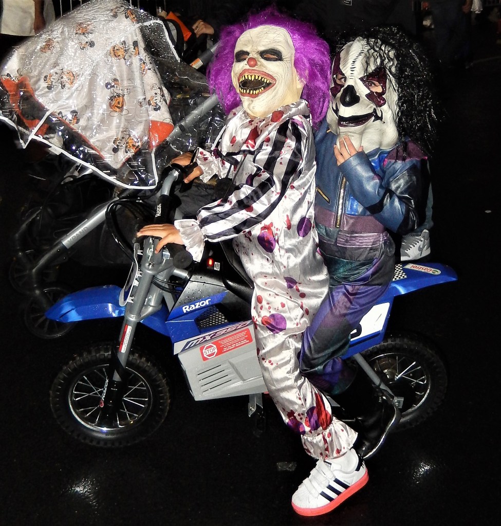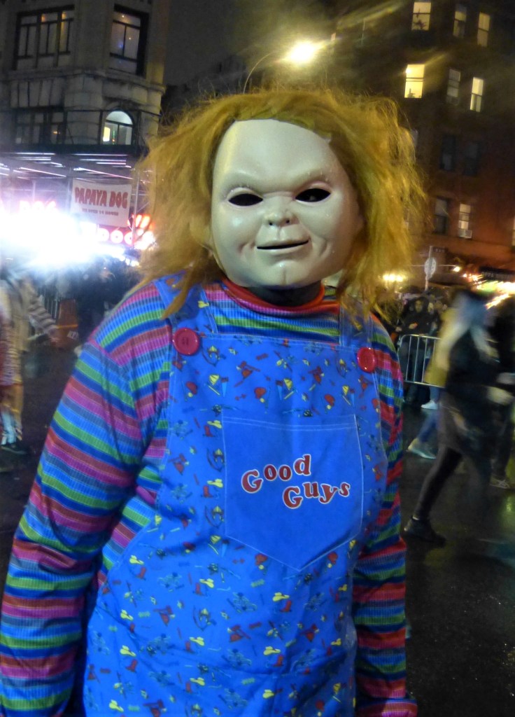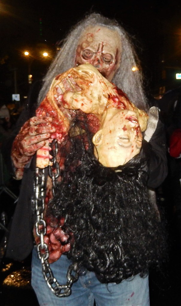 A perennial favorite, The Hungry March Band, played a hopping tune to get people dancing. The thunderous beats of the all female Fogo Azul kept the party going. Dozens of colorful floats and amazing groups kept things going. Marchers in scary costumes attempt to scare some of the million revelers. Screams can be heard from down the block. Shout out to the crew of The Ghostbusters with their original replicas of both cars used in the blockbuster movies. La Fortaleza was a Mexican inspired float with lots of colorful costumes and makeup honoring the Day of the Dead. The parade has always had a large international attraction and this year a musical band from Italy, Vecia Trieste, played a nice tune for the crowd. A steady rain come down towards the middle part of the parade but that didn’t stop the crowd from going into a mad frenzy of yelling when the popular Michael Jackson Thriller Dance group zombied up the parade route. They always put on a good show. The all-female drum band Batala were so much into their performance they even had Darth Vader break dancing. This is one of NYCs finest parades and brings out the best in NYC creativity. If you have never been to one, it should be on your bucket list. Scare Ya Later.