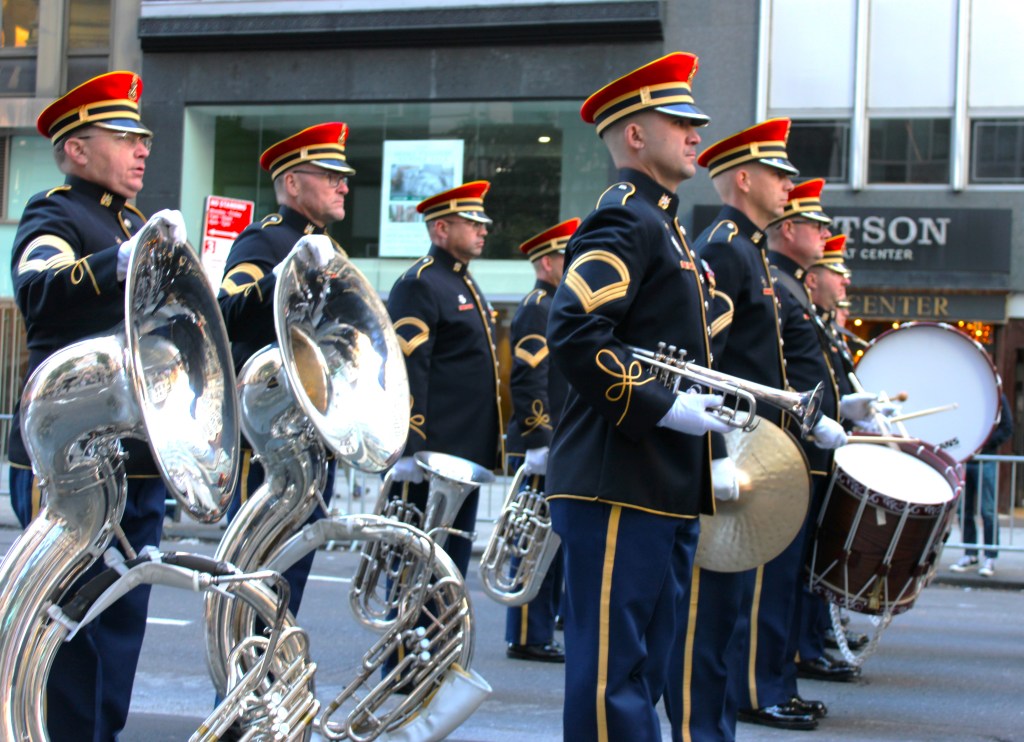 In this parade, all of the Armed Forces send their honorary marching band units with some of the best military uniforms and best marching tunes. This year the Army was recognized as the lead marching unit and they certainly did not disappoint. The Army marching band had one of the best uniforms and made quite an impression for what was in store for the rest of the grand event. Of course when the Marine Corp. band arrived, they took no prisoners. Their small band played with splendid precision as they played their theme song. Various military support groups like Operation Mend and The Wounded Warrior Project sent their reps. It was a good thing there was a separation of time and space between Army and Navy. We’ve seen how things can get at one of their football games. While the Navy band was passing by the famous Patience and Fortitude lion statues by the landmark New York Public Library on 42nd Street, a moment of silence was observed at 11am. After that, the music kept on going with some patriotic tunes that the Navy band played beautifully. The Air Force and its sub-branch, Space Force, arrived as part of the Joint Base, Maguire Dix and Lakehurst. This is the only Tri Service Installation in the country. The Coast Guard brought up the rear of the Armed Services. They were loud and proud.