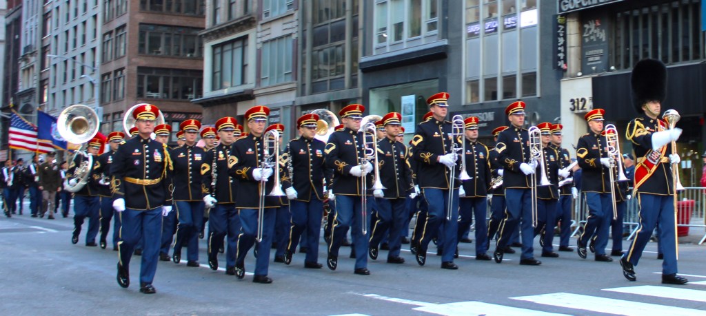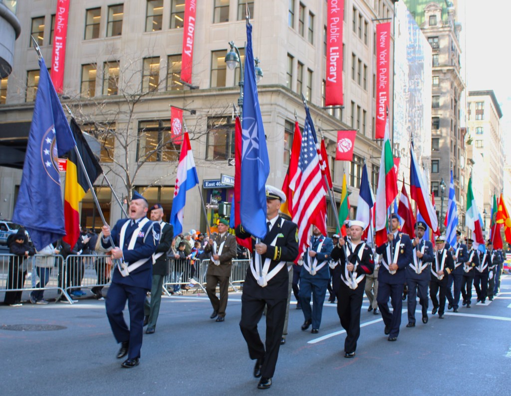 The Veterans Day Parade has garnered international acclaim as well. Our most trusted allies, England and France have always sent their representatives to march. This year, France sent a special gift to the parade in the form of the Two Flags from the Association “The French Will Never Forget”. The two gigantic American and French flags have been displayed on the sands of Omaha Beach, the famous landing site of the American military advance into France to turn World War II into the Allies favor. The flags also made their way to the Statue of Liberty on the 70th anniversary of D-Day. This year, NATO sent a group carrying flags of each NATO nation as a show of unity especially with the current wars being played out in Ukraine and Gaza.