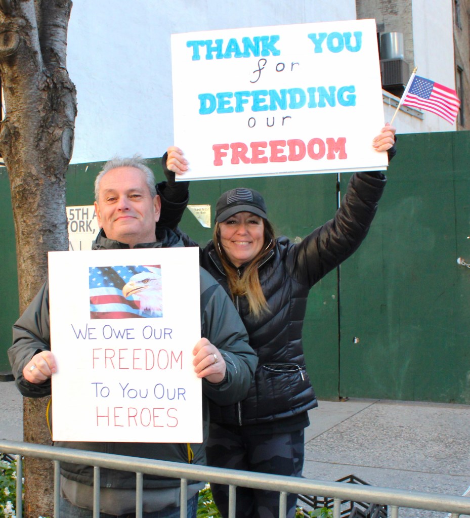 An earlier than usual start to the honorable Veterans Day Parade was met with chilly temperatures but that didn’t curb any of the enthusiasm to salute the vets that sacrificed their time and energy for this country. Originally known as Armistice Day, which recognized World Peace at the end of WWI in 1919, the Veterans Day Parade has evolved into a show of strength and unity as all the Armed Forces sent their Honorary Guards to pay their respects to the vets all across the city and nation as the parade was televised nationally on WABC and Military.com. As usual with this parade, mounted police let the revelers lined up on the parade route on 5th Avenue know the parade was about to kick off. The first of over 100 marching groups were the Ground Zero Flag marchers carrying one of the largest American flags of any parade this year. A New York present to the vets included a rounding bagpipe salute from Emerald Society FDNY Pipes and Drum Band. This got the crowd worked up for a great parade day.