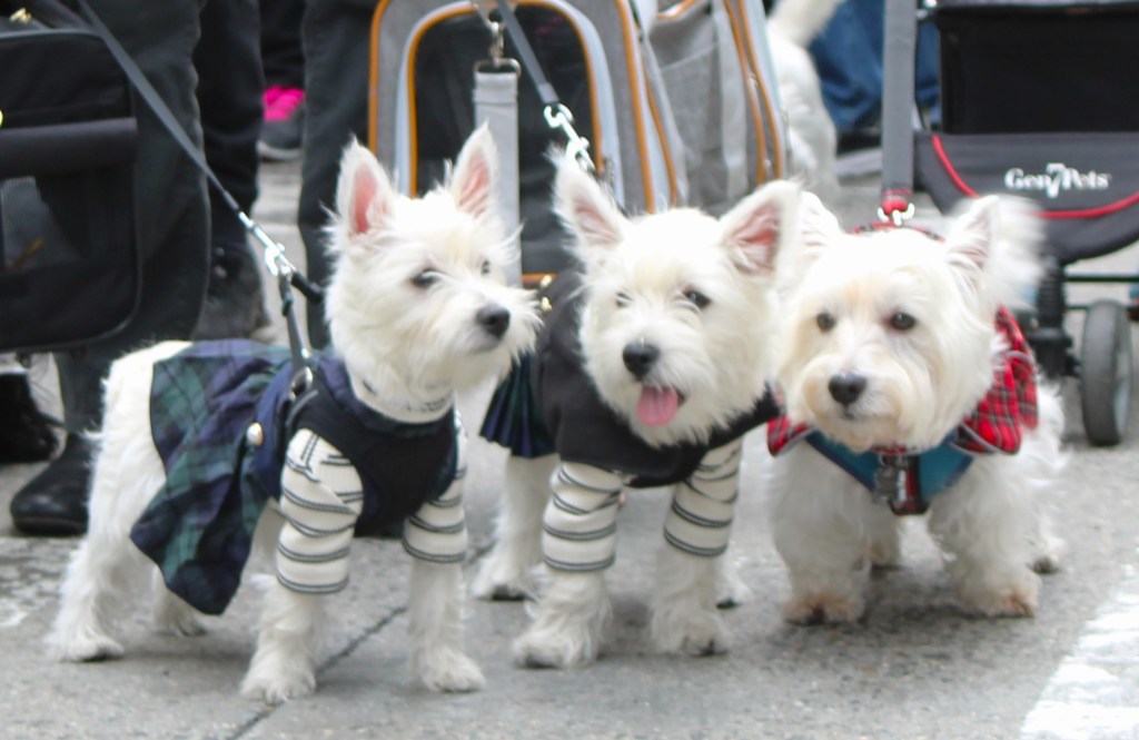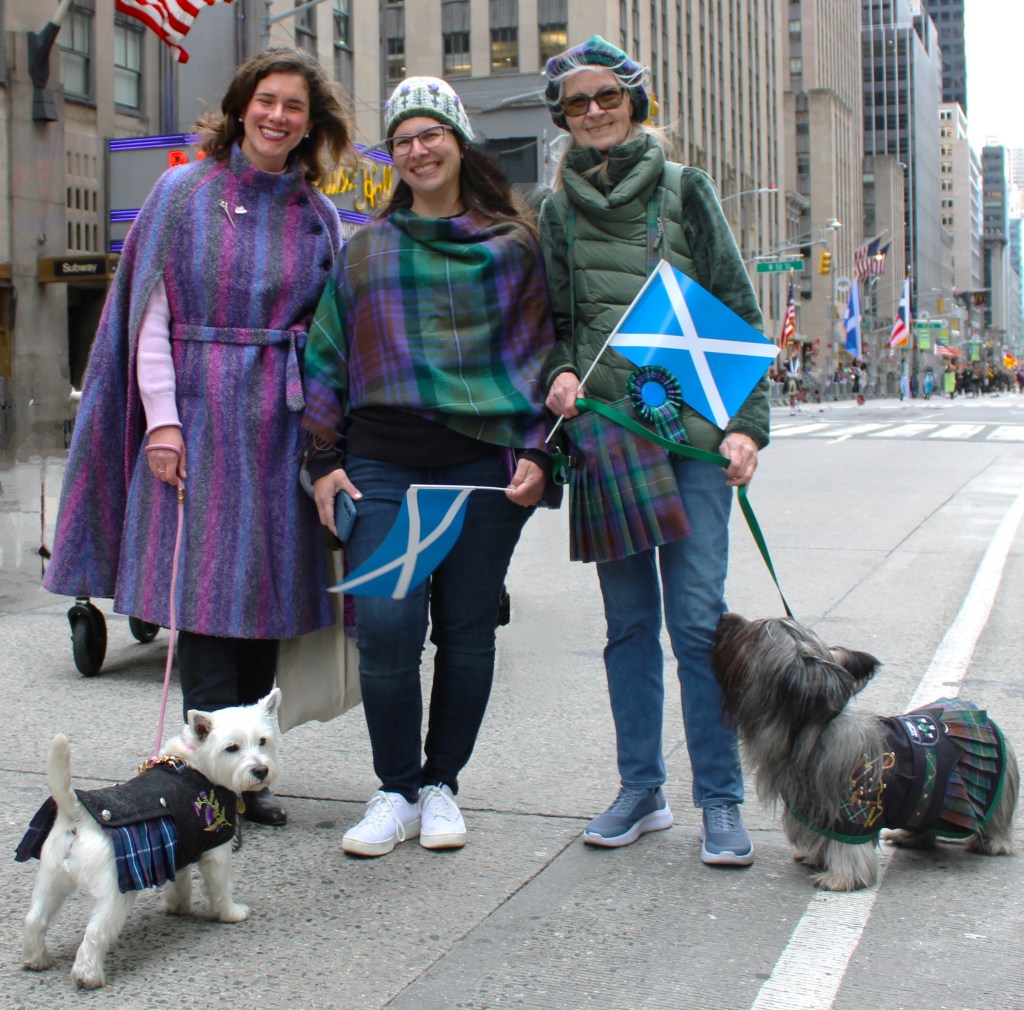 A crowd favorite is when Scottish Dancers stop and dance for the onlookers. That’s always a lot of fun to watch. Another crowd pleaser with their dazzling yellow and black tartans are the Shamrock and Thistle Pipes and Drum Marching Band from Ocean County, NJ. Many other groups representing Scottish culture made their way onto the parade route. One that always brings smiles to peoples faces is when the hounds bring their owners to the parade. Westies, Collies and even Scottish Deerhounds were among the breeds present for the grand event. In this parade, many of the family clans present their colors to the crowd. It really is a beautiful part of the parade.