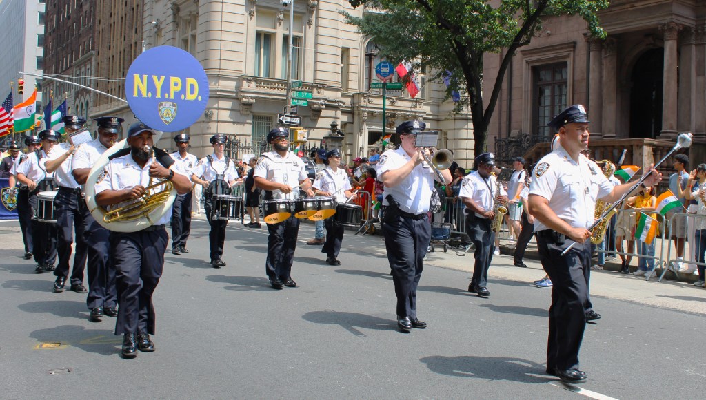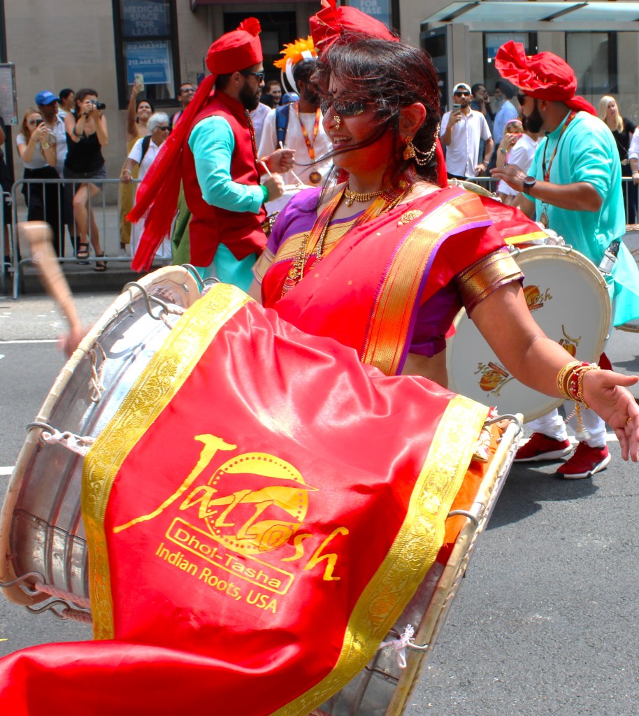 Billed as the largest parade celebrating Indian Independence outside of India, the 42nd annual celebration began around 1pm on Madison Avenue near 39th Street. Thousands came out to be part of the festive occasion. I have always liked the positive energy the marchers bring to the parade especially the drummers of the group Jallosh. They are a perennial favorite of spectators along the parade route. Pallavi, originally from Maharashtra, India was attending her second parade and mentioned she enjoys watching the Jallosh group as they “closely represent traditional dance and music of Mahasrashta.” She also had family participating in the group, so she was there to cheer them on. They were one of the first large groups to march and set the tone for the rest of the parade with their thunderous boom of the drums and high energy. A similar group, Ehiledar, made an impressive appearance at the parade.