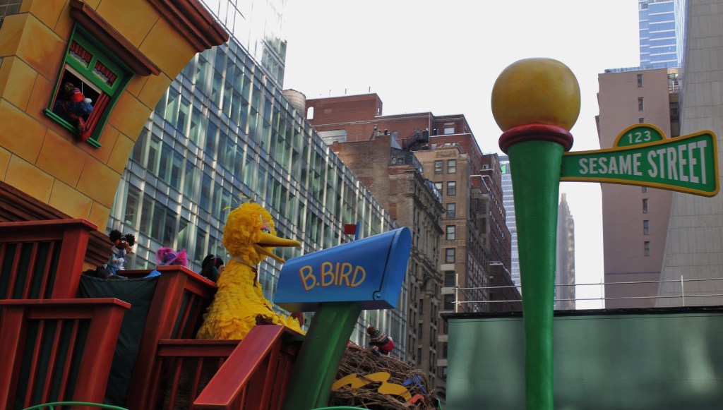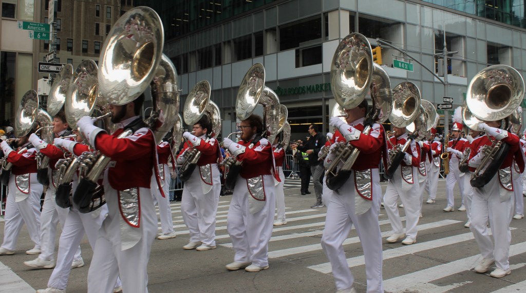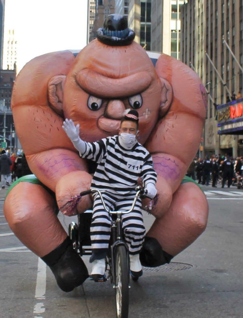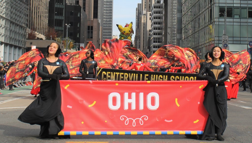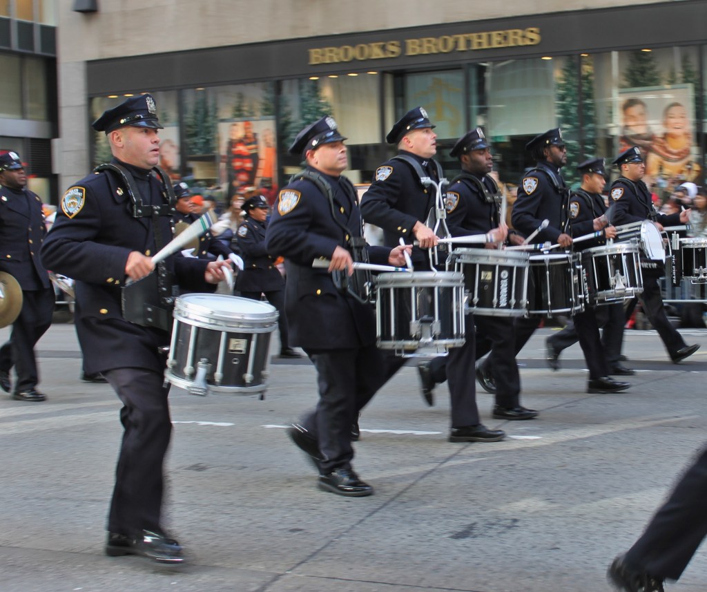 The excitement kept building up as more iconic large balloons made their way down the parade route on 6th Ave. towards Herald Square and the famous Macy’s department store where the event was televised to millions of people watched on television. Everyone’s favorite Spongebob Squarepants with his buddy Gary hitching a ride on his back got all the kids big and small excited. The older kids thought Goku was cool. But a show stealer was a new entry to the parade. Grogu aka Baby Yoda made its way up the parade route with young fans pointing and smiling. One HS marching band with a heavy drum line came from Brownsburg, Indiana. They were amazing to watch and listen to.