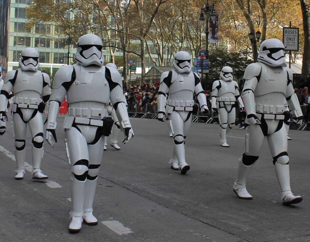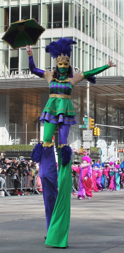 As usual, a big draw to this parade is the list of celebrities that get to entertain the crowd with some of their hits. Country music superstar Chris Lane got a big cheer from the crowd. Kelly Rowland, Jon Batiste, and Nelly got much love as well. Some Star Wars Stormtroopers marched in the parade which was a bit odd. They were followed by fun marching band from Tulsa playing Darth Vader’s theme song. Now it made sense. The Union HS Marching Band brought lots of energy and enthusiasm to bounce off the audience. A little known fact is that the Macy’s Thanksgiving parade has the largest collection of clowns assembled for any major event. These clowns know how to have fun and work the crowd.