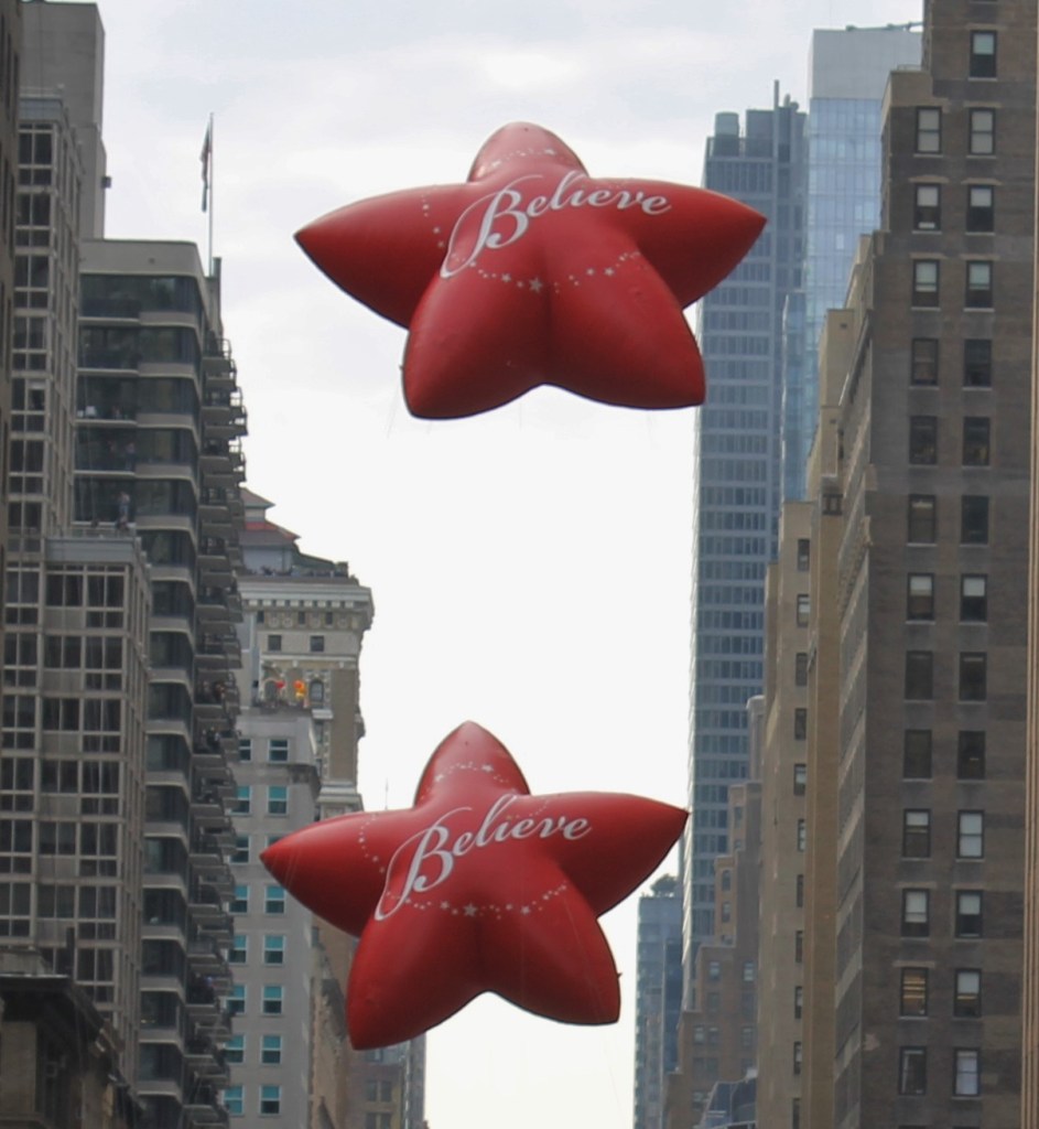 At times there is a delay on the parade route as performers take up time down by Herald Square television cameras doing their thing. This gives some good opportunity for groups to do their thing for the crowd along the parade route. A group of jump rope skippers called JUMP…(what else) were showing off their talents. A top notch HS Marching Band out of Centerville, Ohio showed why they deserved to be in the spotlight. They were one of the best bands there. The largest marching band came from far away. Roll Tide was what could heard from the University of Alabama Million Dollar Marching Band. They probably has the biggest tuba section I’ve seen at a parade. Of course as the parade goes on, the theme turns from one of thanks and gratitude to one of the magic of Christmas. All of Santa’s helpers and a wintery scene all prepare the way for the happy guy…Santa himself. It never ceases to amaze me at the look of happiness on the faces from kids from ages 4 to 94 when Santa waves to them.