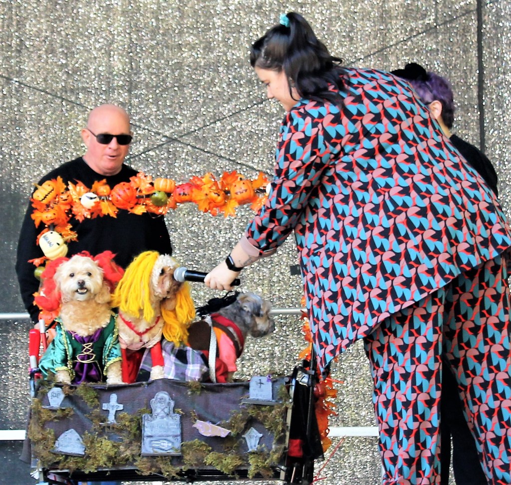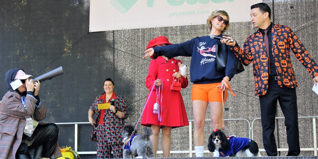 The annual Tompkins Square Park Doggie Halloween Parade returned to its old haunts for one of the largest displays of doggie costumes. This the premiere event of its kind in the City. Yes there are plenty of other doggie costume parades around town but this is the big one. Prior years had been cancelled due to Covid19 or moved the event to a park by the East River but there’s nothing better than bringing it back to where it all began. The parade has gotten so popular there were two stages set up throughout the park just to accommodate the hundreds of amazing costumes that were presented to the judges. Thousands of people filled the park for a few hours of pure fun and NYC creativity at its best. One stage had a panel of judges to review the categories of Best Costume, Best Costume on Wheels, Best Food Costume, and Best Animal costume. The other stage set up had a panel judges voting for Best NYC themed costume, Chihauau/Chilloween, Best Group, Celebrity-Themed costume, and Scariest Costume. I honestly did not envy the judges. Their task was not easy as there so many creative costumes to choose from. There were two hosts on each stage to greet the doggies and their owners. Some of the host read off a blurb written by the entrants to give a better depiction of the look. Entrants came from all over the world to be part of this event. It truly is becoming a NYC tradition like no other. And if this is any indication of what is coming up for the Village Halloween Parade …watch out…it’s going to be a wild one!!!! Here are some of my faves…enjoy…