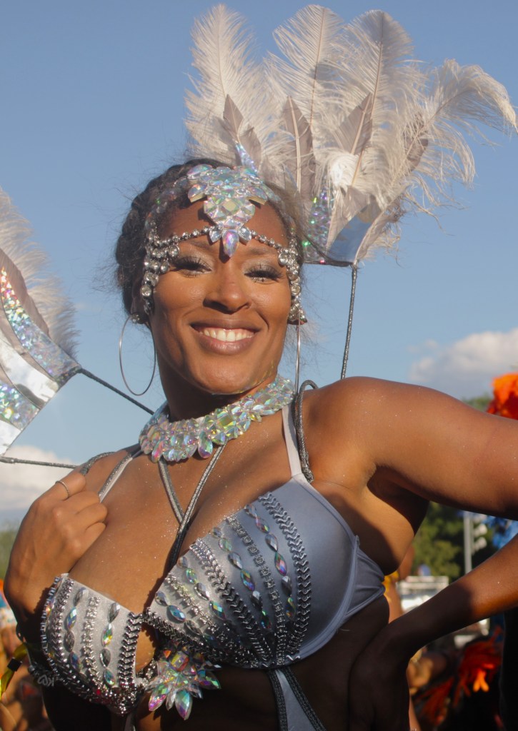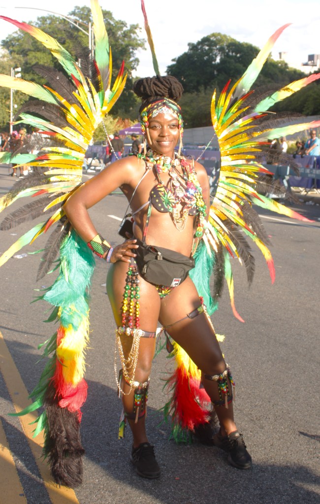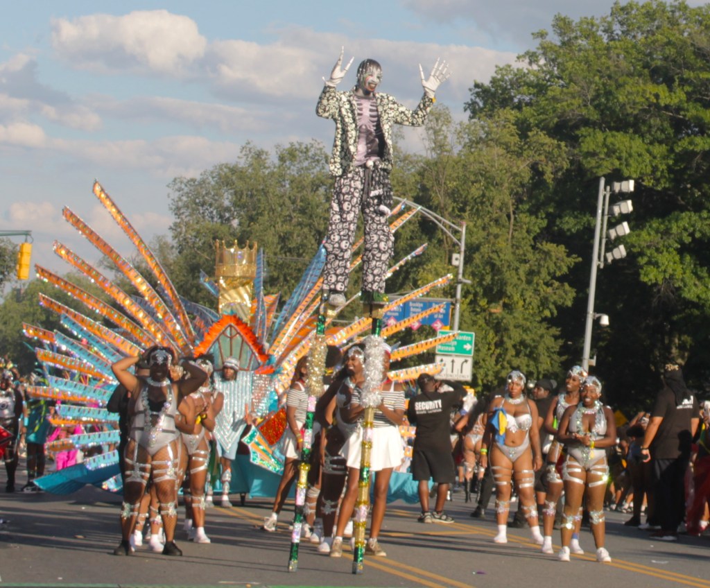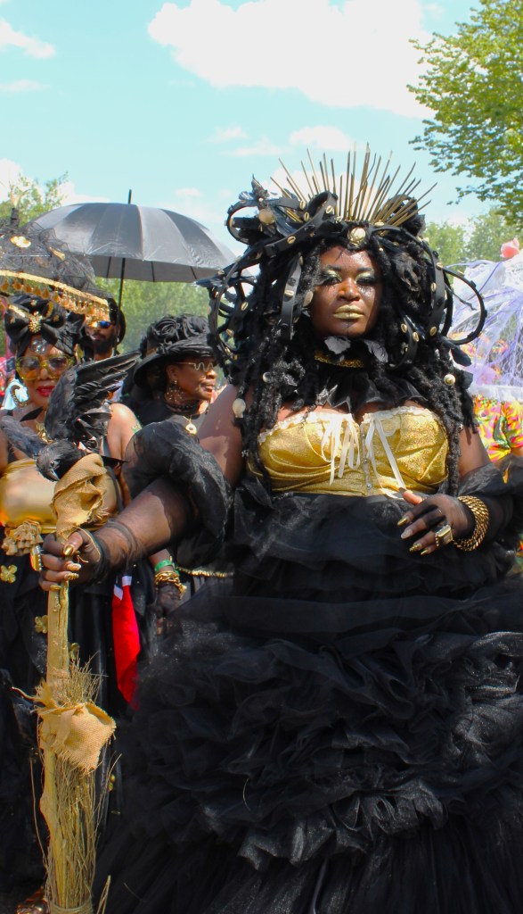 The first part of the parade is filled with politicians from NY coming out to wave to the crowd. In prior years Mayor Eric Adams went from one side of the Parkway to the other shaking hands and taking selfies. This year, the Mayor walked behind his Mayor banner and hardly waved to the crowd. The one politician that was having a fun time was NY Attorney General, Leticia James. One would think she would be happy with all the legal victories she has claimed for NYers this year. The second part has floats from local unions and corporate sponsors as well as community groups. A favorite group of mine always has the best clothes design of the parade. This years the theme was Wedding Gowns and Suits from traditional weddings from Tobago. Once the Catholic Charities group passes by, that’s when all hell breaks loose. The big draw for this parade are the masqueraders and their costumes. There are small and large groups that try to sway favor from the judges situated in front of the Brooklyn Museum. Tractor trailers with huge speakers blaring some fun tunes attract revelers to march right next to them. Masqueraders of that group are separated from the followers so people can see the details that go along with many of these costumes.