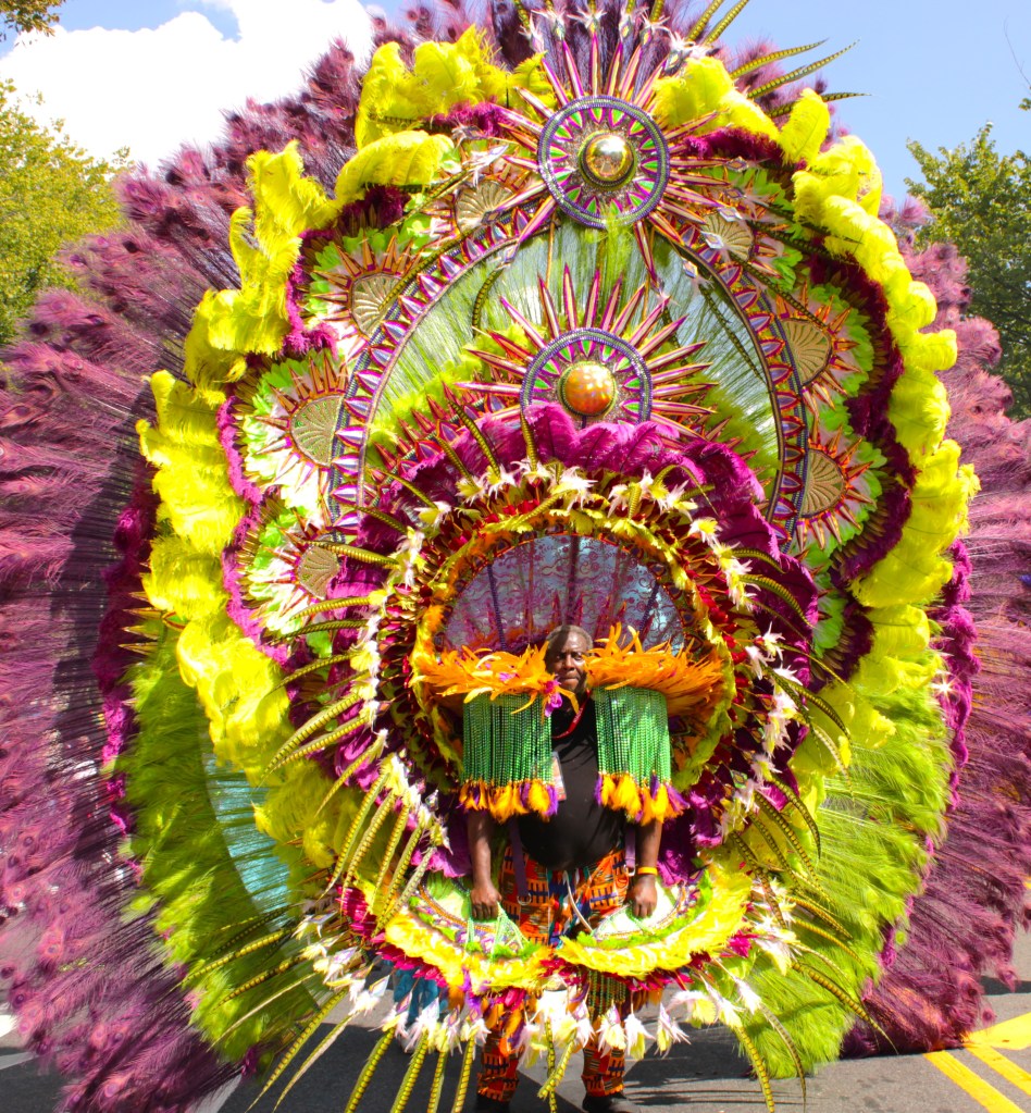 The West Indian Day Parade on Labor Day is unlike any other parade in NYC. Of course, all parades are different but none offer the sights, sounds and aromas that fully represent their culture like this one. From the moment you step on Eastern Parkway, the appealing scent of seasoned meats being grilled, cooked rice and peas, fried fish, roti, and many more delicious foods coming from the kiosks on both sides of the parade route, draw you into the festive mood of the spectacular event. Most parades have floats that show people dressed in traditional cultural dress or a corporate sponsor with popular personalities on board. The West Indian Parade has tractor trailers with huge speakers blasting people’s favorite songs to get them dancing and celebrating their culture.