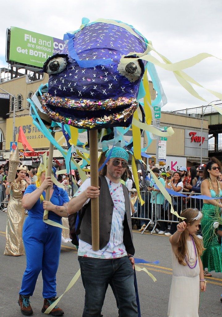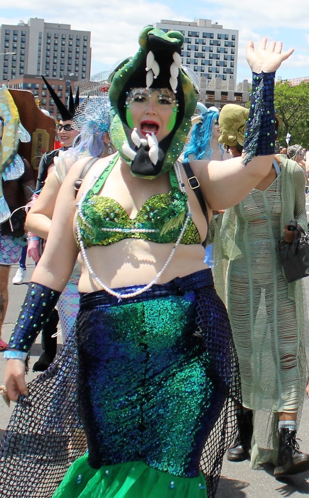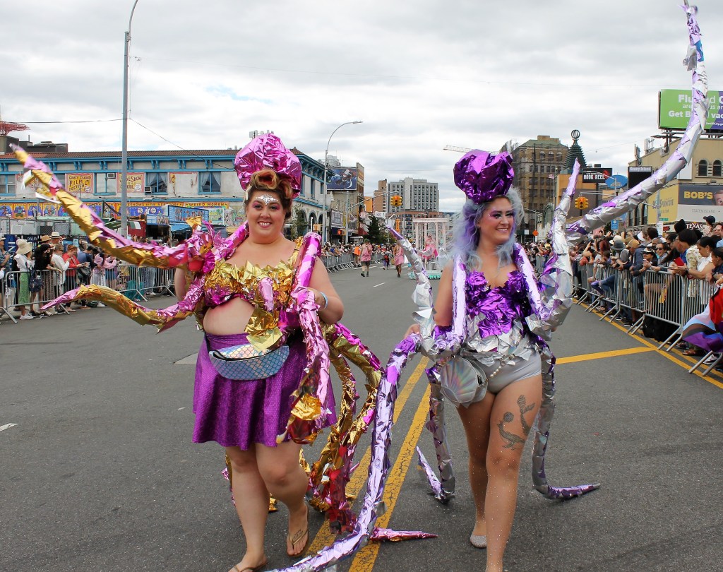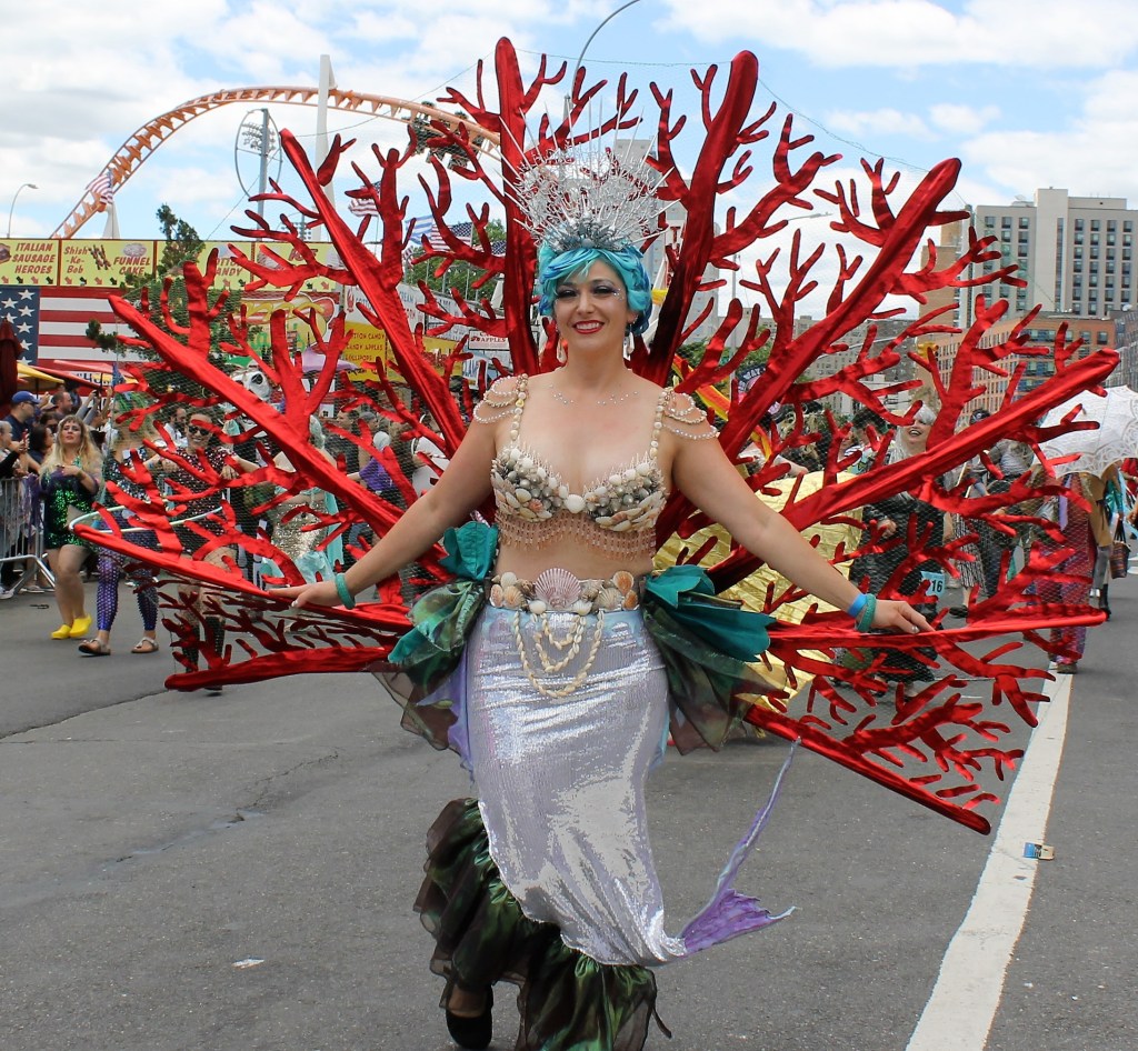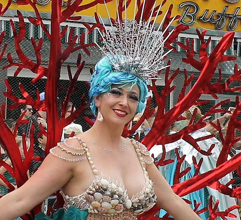 A cold front pushed through to give some relief of the hot temperatures in the City lately. It was just cool enough for thousands of sea creatures to come out of the Atlantic Ocean and onto Surf Avenue in Coney Island to celebrate the 40th annual Mermaid Parade. This is an annual ritual that welcomes in summer and boasts as being one of the largest artistic displays in the country. Sea creatures come from all parts of the country to be part of the wild and whimsical event that draws hundreds of thousands to see some of the best of NY creativity on display.