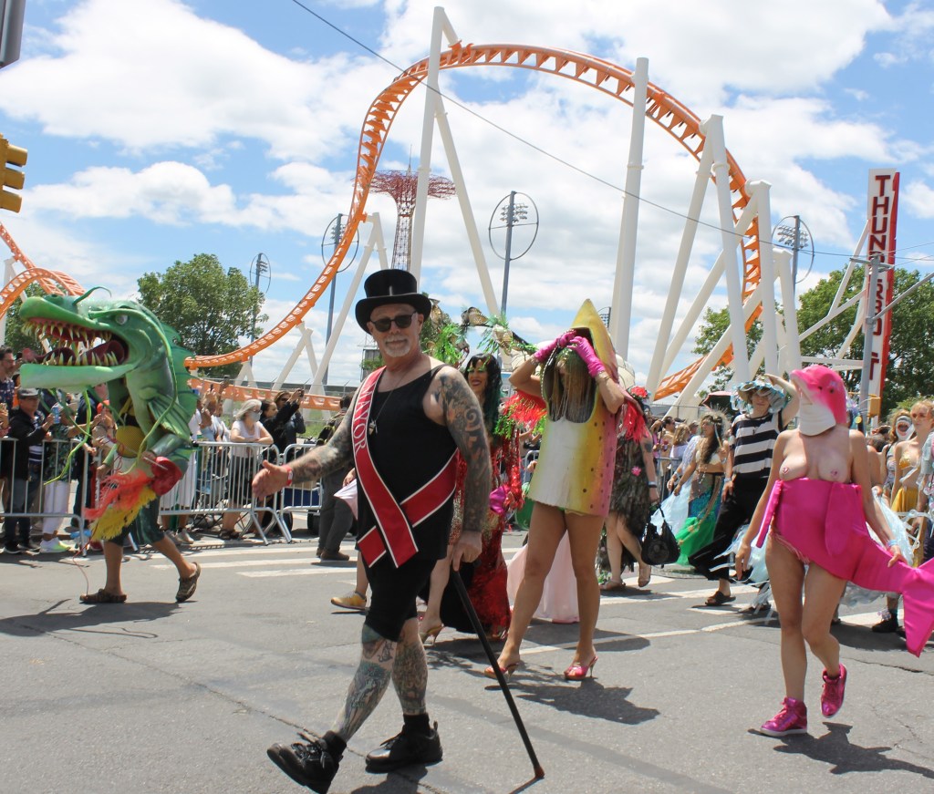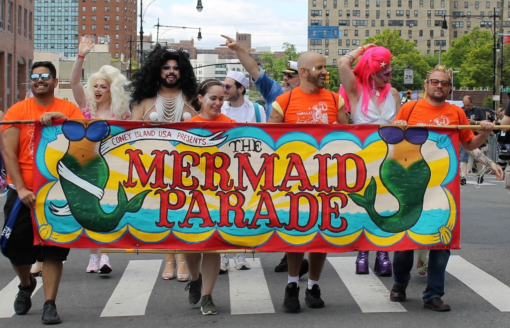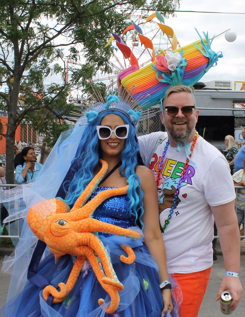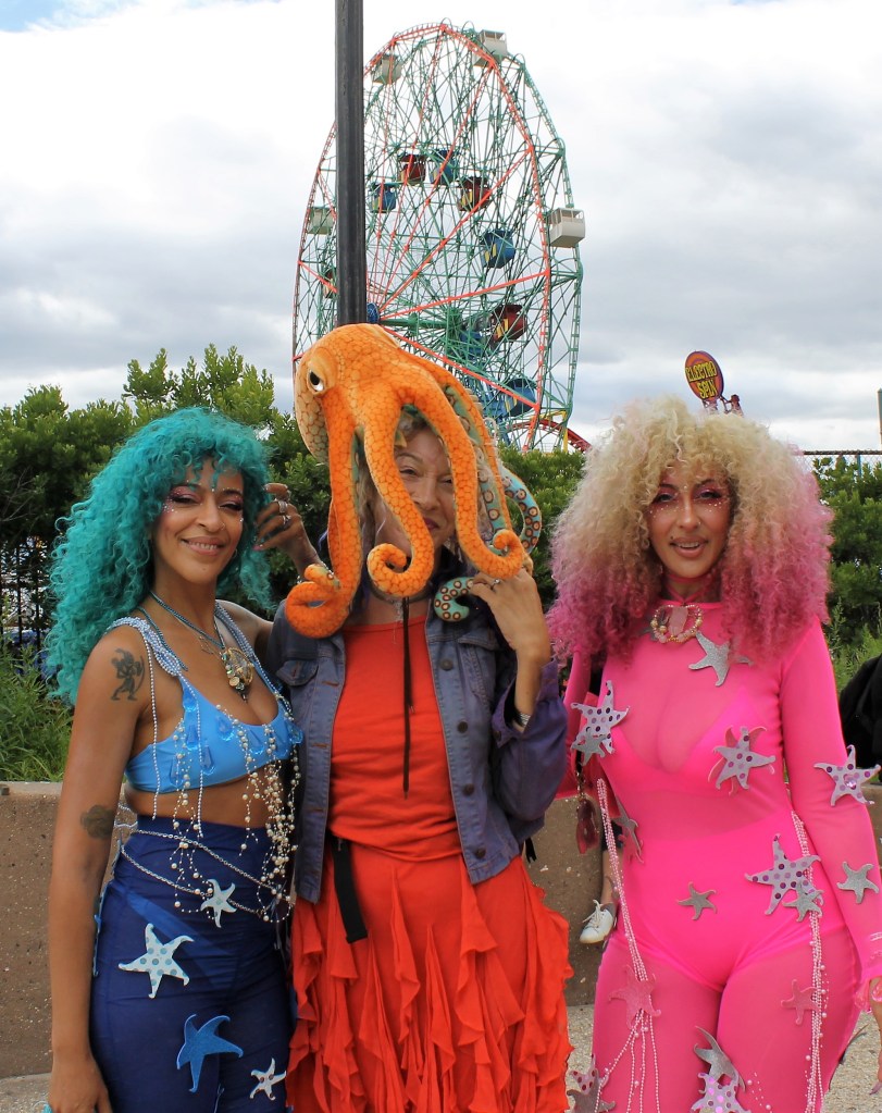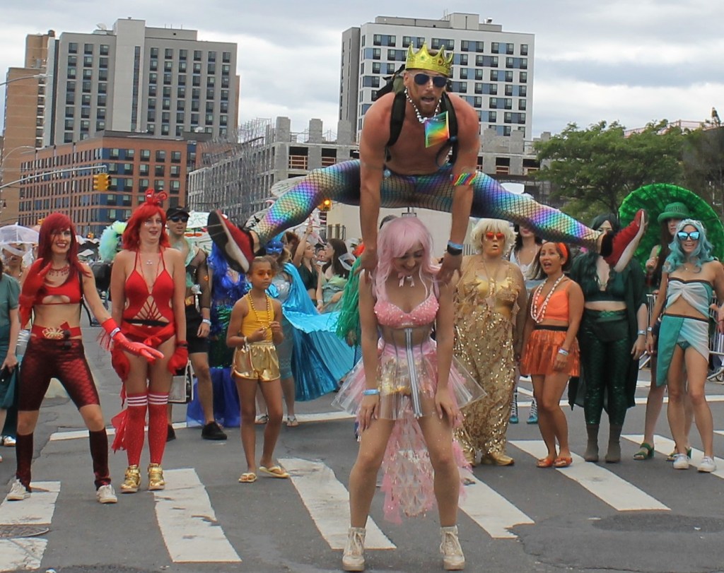 A cold front pushed through to give some relief of the hot temperatures in the City lately. It was just cool enough for thousands of sea creatures to come out of the Atlantic Ocean and onto Surf Avenue in Coney Island to celebrate the 40th annual Mermaid Parade. This is an annual ritual that welcomes in summer and boasts as being one of the largest artistic displays in the country. Sea creatures come from all parts of the country to be part of the wild and whimsical event that draws hundreds of thousands to see some of the best of NY creativity on display.