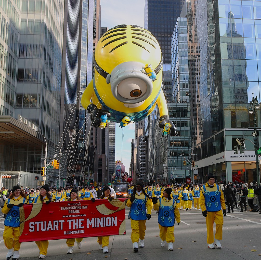 The 99th annual Macy’s Thanksgiving Day parade was as exciting and eventful as billed. Hailed as the Parade of Parades, it boasts the largest character balloons, the most colorful and fanciest floats, premier marching bands across the country, and the largest assembly of clowns anywhere in the world. Well over a million people braved the chilly morning weather to watch the big balloons float by. The new balloons introduced this year really got a great response from the crowd. Buzz Lightyear was one of the biggest and best balloons of the parade. Macy’s tapped into the phenomenal interest in K-Pop Demon Hunters with the huge Derpy Tiger balloon. The other rookies of the balloon fest , Mario, Pac-Man and Shrek in an Onion Carriage were huge hits as well.
