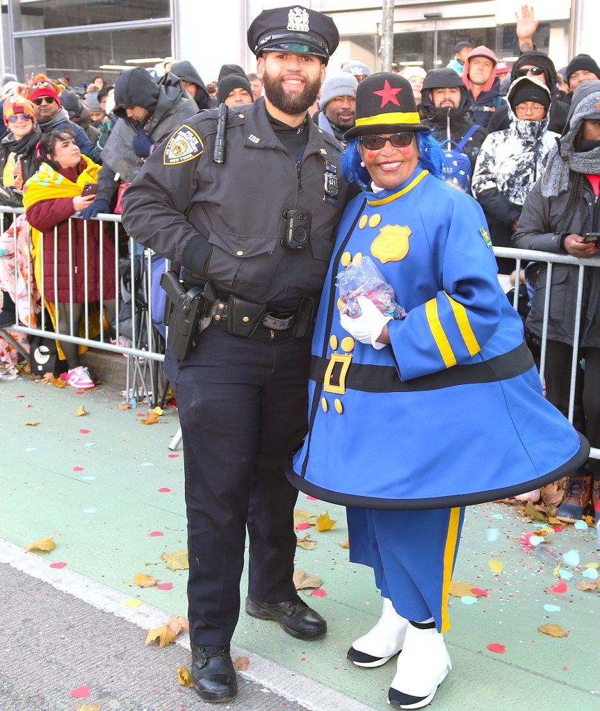 The big draw for this parade since it’s inception has been the big balloons. I watched the faces of kids young and old brings smiles to their faces as the characters that personify Americana and world culture float on by with a crew of about 100 people holding the ropes to keep them steady. Popular celebrities were aboard some of the most creative and colorful floats. Busta Rhymes was rapping one of his big hits while the crowd sand along. Kool and the Gang waved to the crowd while on board a Bronx Zoo float with replicas of exotic animals. Darlene Love was on a Christmas themed float. The holidays just aren’t complete without hearing a Darlene Love Christmas soundtrack. Probably the most intriguing float was the Foreigner Meets Stranger Things Demigorgon where it appeared the robotic character was singing to a Foreigner classic hit I’ve Been Waiting For A Girl Like You.