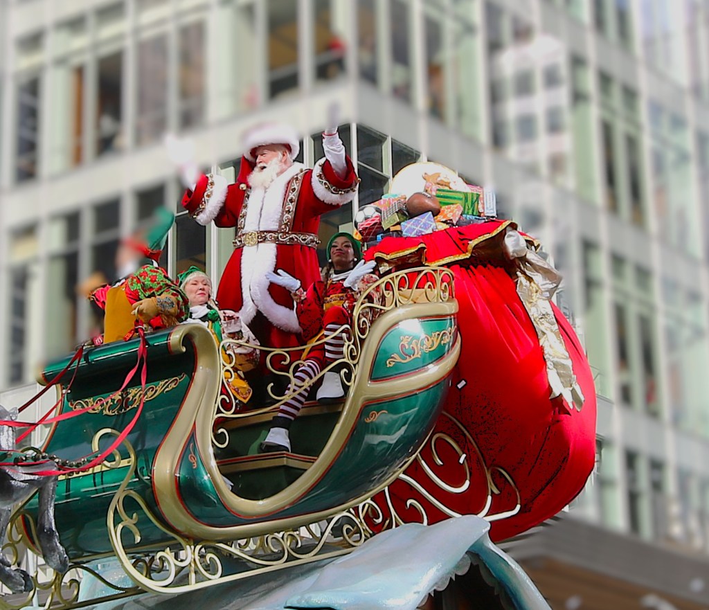 One of the little known facts about the much heralded Macy’s Thanksgiving Day parade is that it is the largest assembly of clowns in the world. Over 800 volunteers dress up as clowns and toss confetti to the crowd and wish everyone along the parade route a Happy Thanksgiving. One of my personal favorites is when family members join together as clowns. It’s something they will always remember and such a cool thing to do. Once the parade theme changes from Thanksgiving to Christmas, it means one thing….the big guy is coming soon. When the Santa Claus float arrives with the reindeers and sled on top of a gingerbread house all eyes are glues to the happy man in a red suit and white hair and beard with his arms raised in celebration and joy. Kids from 4 to 94 watch in amazement and hope of a better tomorrow.